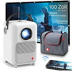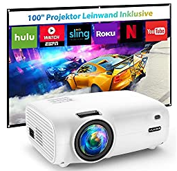 Mini Beamer, VILINICE 7000Lux Heimkino Beamer mit Screen, Unterstützt 1080P Full HD, 100000 Stunden LED Video Beamer kompatibel mit TV Stick, HDMI, USB,SD, AV, VGA, Smartphone