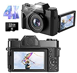 Digitalkamera 4K Fotoapparat Digitalkamera 48MP 30FPS Full HD Kompaktkamera 16X Digitalzoom mit 3,0 Zoll 180-Grad-Drehung Flip-Screen-fotokamera für YouTube (Autofokus & 32GB Micro SD Karte)