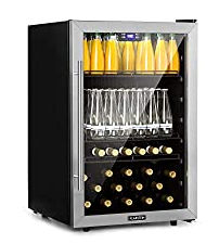 Klarstein Beersafe 5XL Getränkekühlschrank - Kühlschrank, 148 L für bis zu 231 Getränkedosen, 3 Metalleinlegeböden, Glastür, freistehend, Bodenrollen, Edelstahlfront